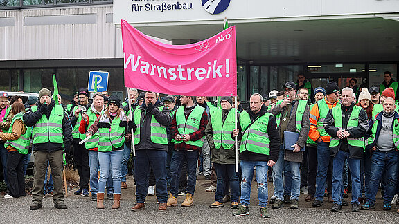 Beschäftigte der Autobahn GmbH machten Ihrem Unmut vor der Zentrale der Autobahn GmbH in Berlin Luft.